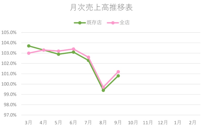 流通スーパーニュース > 月次 > フジnews|9月既存店売上高0.8%増/全店1.2%増 フジnews|9月既存店売上高0.8%増/全店1.2%増 月次 / 2025年10月16日 ツイート (株)フジ(広島県広島市、山口普社長)が2025年9月の月次営業成績を発表した。既存店売上高は100.8%、全店売上高は101.2%だった。 店舗状況では、9月はマックスバリュ1店舖を閉店し、店舗活性化として高知県の「マルナカ奈半利店」、広島県の「フジ庚午店」、香川県の「マルナカ栗熊店」、兵庫県の「マックスバリュ上郡南店」、山口県の「ザ・ビッグ大内店」の5店舗を改装した。総店舗数は485店舗。 ツイート
