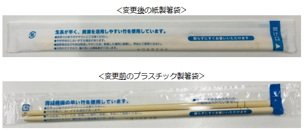 全店で紙製の箸袋に変更することによって、約68トンのプラスチック使用量の削減を見込む。変更前の2023年度と比較すると約122トンのプラスチック使用量の削減に繋がる。