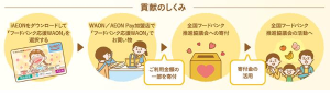「フードバンク応援WAON」は売上金額の一部を、イオンと明治安田が「一般社団法人 全国フードバンク推進協議会」に寄付し、その活動に活用してもらう。顧客自身が負担することなく寄付ができる仕組みになっている。