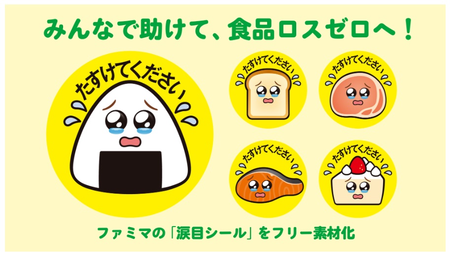 (株)ファミリーマート(東京都港区、細見研介社長)は10月22日(水)、食品ロス削減のために取り組んでいる「涙目シール」から、新たに4種類のデザインを加えた「涙目デザイン」のイラストをフリー素材として無償で提供する。