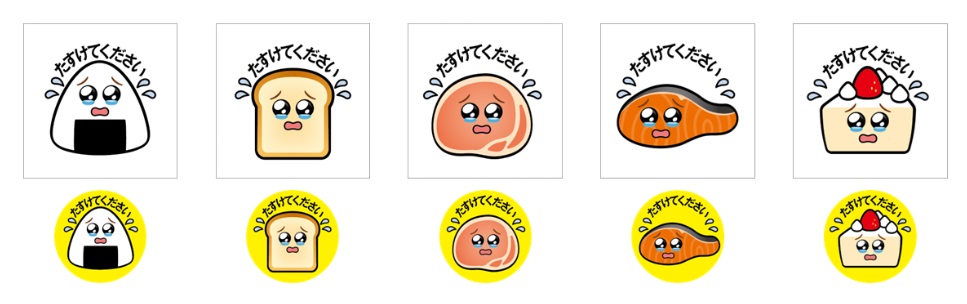 今回「涙目シール」による食品ロス削減の効果をファミリーマート店舗だけでなく、社会全体へ広げることを目的に、「涙目シール」のイラストをフリー素材化して無償で提供する。既存のデザインに加え、新たにパン、肉、魚、ケーキの4種類のイラストを追加して展開する。