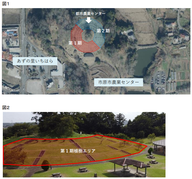 同協定に基づき、第1期の取り組みとして11月15日(土) に、都市農業センター(図1)内にある浅間塚(図2)にアジサイ350本の植樹を実施する。