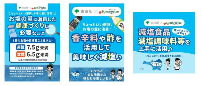 この取り組みは、令和6年3月に策定された「東京都健康推進プラン21(第三次)」に基づき、地域住民の健康づくりを応援するもの。減塩におすすめの商品をポップなどで掲示していく。