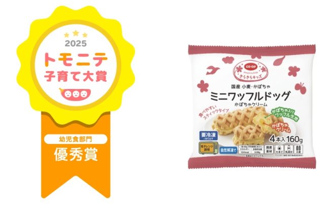 日本生活協同組合連合会(東京都渋谷区、新井ちとせ代表理事)の商品「CO・OPミニワッフルドック(かぼちゃクリーム)4本入り(160g)」が、トモニテ子育て大賞2025の幼児食部門で優秀賞を受賞した。