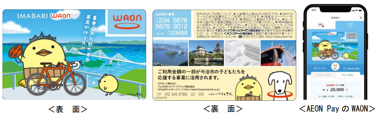 全国のAEON Pay加盟店約370万カ所、WAON加盟店約156万カ所で利用された「IMABARI WAON」の売上金額の一部がイオンから今治市に寄付され、「今治市の子どもたちを応援する」事業に活用される。