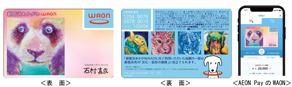 また協定の取り組みの一環として2026年1月中にご当地WAON「新居浜あかがねWAON」を発行する。カードデザインは新居浜市在住のアーティスト石村嘉成氏から作品画像を提供してもらい制作した。石村氏の特長でもある、鮮やかな色彩で描かれた躍動感のある動物がデザインされている。