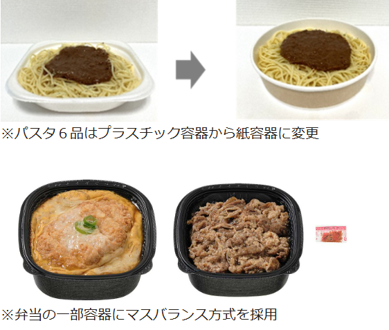 これまでも、紙などの天然素材を使用した包材の活用や、インクや着色料の使用を削減した容器の使用などに取り組んできた。今回のパスタに使用する容器を紙素材に変更することや、マスバランス方式によるバイオマスプラスチックを採用することで、2025年10月時点で、オリジナル商品全体のうち約40%が環境配慮型の素材に変更されている。