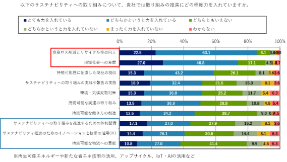 公益財団法人流通経済研究所(東京都千代田区、加藤弘貴理事長)は、食品小売業の企業111社を対象に実施したサステナビリティの取り組みに関するアンケート調査結果を公開した。