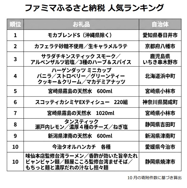 ファミマnews|「ファミマふるさと納税」お礼品ランキングや利用動向発表
