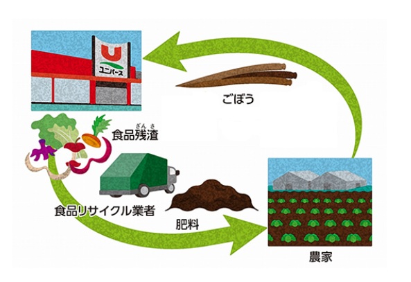 同社では、環境に配慮した商品の販売や廃棄物の発生抑制と再資源化に取り組んでいる。その一環として、ユニバースの店舗で発生した野菜・肉・魚・惣菜などの食品残渣(ざんさ)からできた堆肥を使用し生産した野菜の販売に取り組んでいる。