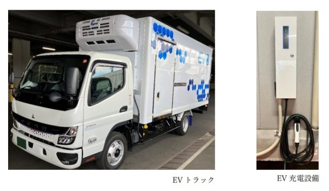 EV充電設備については、三菱商事(株)がユアスタンド(株)と連携し、設置場所提案・充電器選定・設置工事請負・充電オペレーション提案までワンストップで充電サービスを提供する。EVトラックについては、三菱オートリース(株)が EV特有のモーターや駆動用バッテリーもカバーするフルメンテナンスでのリース提供を実施。走行に必要な電力については、MCリテールエナジー(株)が提供する CO₂フリーの電力プランを利用することによりで、充電から走行までの CO₂排出量は実質ゼロとなり、配送由来のCO₂排出量を年間約35.4t削減できる見込みだ。