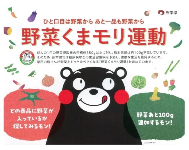 (株)セブン-イレブン・ジャパン(東京都千代田区、阿久津知洋社長)は、熊本県・カゴメ(株)と連携し、熊本県内で生活習慣病予防を呼びかける、野菜摂取促進の啓発活動を実施する。