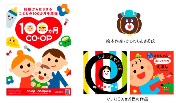 キービジュアルに、「しましまぐるぐる」などの作品で知られる絵本作家・かしわらあきお氏を起用した。こどもたちに直感的に伝わる表現力で、「100か月CO・OP」の世界観を広く発信する。