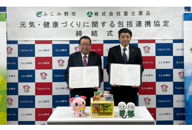 ふじみ野市は、2018年に「ふじみ野元気・健康プラン」を策定して以来、こどもから高齢者まで、すべての市民がいきいきと元気で健康に暮らすための取り組みを推進してる。こうした中富士薬品は、配置薬販売の事業活動を通じて多くのふじみ野市民の生活に接していることに加え、顧客のもとを一軒一軒訪問するという営業スタイルが、ふじみ野市の取り組みに役に立てると考え、同市との連携協定の締結に至った。自治体との連携協定は、今回で39例目となる。