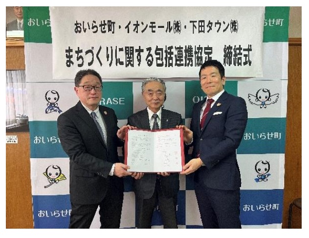 イオンモール(株)(千葉市美浜区、大野惠司社長)は、おいらせ町と下田タウン(株)と連携し、「第2次おいらせ町総合計画後期基本計画」に基づき、官民連携のまちづくりを行うことを目的に「まちづくりに関する包括連携協定」を、2月18日(水)に締結した。