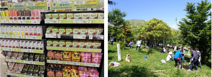 「環境特別WAONボーナスポイント」は、期間中に対象の環境配慮型商品を購入するとお客に付与されるWAONボーナスポイントと同額が、環境保全活動に役立てられる取り組み。九州内の「イオン」「イオンスタイル」「マックスバリュ」「マックスバリュエクスプレス」「ザ・ビッグ」「ホームワイド」で、2022年から実施している。
