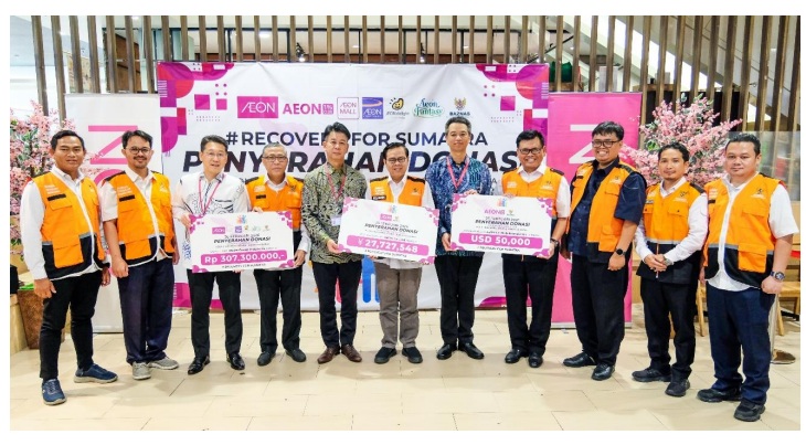 イオンは、被災地域の一日も早い復旧・復興を願い、緊急支援募金を実施。全国のイオン・イオンスタイル・マックスバリュなどグループ48社、約8100カ所の店頭に加え、キャッシュレス決済などで集まった募金は、総額1775万8774円となった。この募金に加え、イオンから996万8774円を寄付し、合計2772万7548円を2月26日(木)に国家ザカート寄付金管理庁BAZNAS(Badan Amil Zakat Nasional)へ寄付した。