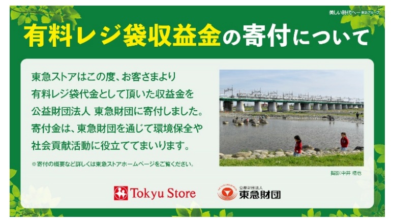 の有料レジ袋収益金100万円を、公益財団法人東急財団に寄付した。