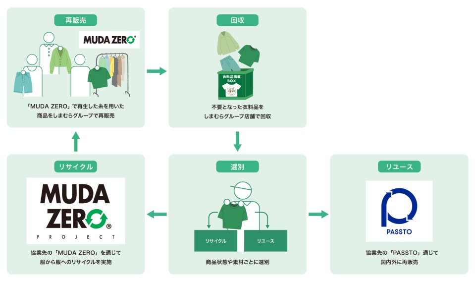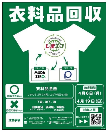 実施店舗は、 一部離島店舗を除くしまむらグループ全店舗。回収品目は衣料品全般(他社品可)。