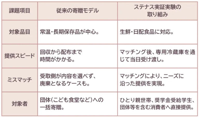 一方で、人気商品の即完売による偏りや、野菜・日配品のマッチング率の低さ、団体側の受け取り体制とのミスマッチなど課題も浮き彫りになった。