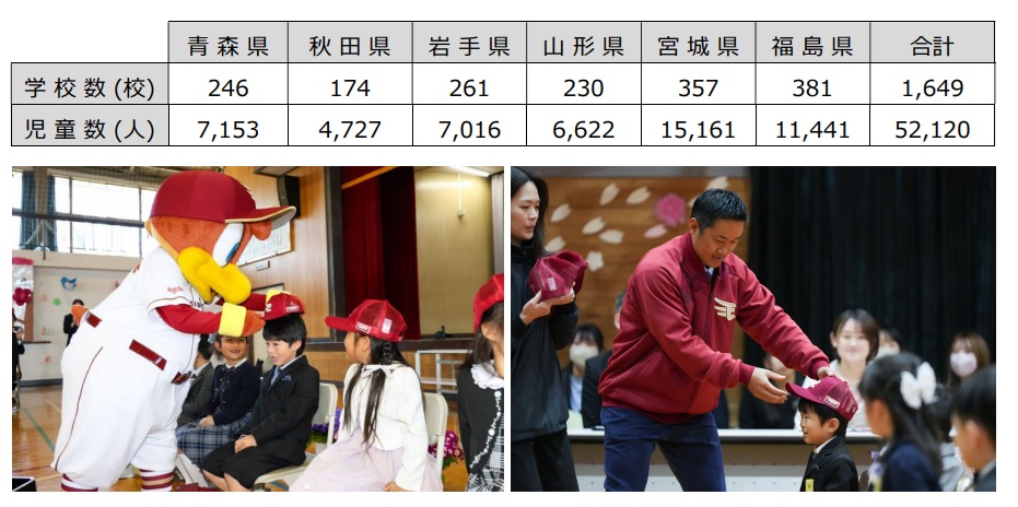 流通スーパーニュース > CSR > やまやnews|東北6県の新小学1年生に「楽天イーグルスキャップ」贈呈 やまやnews|東北6県の新小学1年生に「楽天イーグルスキャップ」贈呈 CSR / 2026年04月27日 ツイート 酒販チェーンの(株)やまや(宮城県仙台市、山内英靖会長)は、(株)楽天野球団(宮城県仙台市、森井誠之社⾧)を通して、東北6県の1649校、新小学1年生5万2120人を対象に、入学記念として「楽天イーグルスキャップ」を贈呈した。 入学年である「2026」が刻まれ、小学校生活を安全に、また友達と仲良く6年間過ごせるようにという願いを込めて継続している取り組みだ。 ツイート