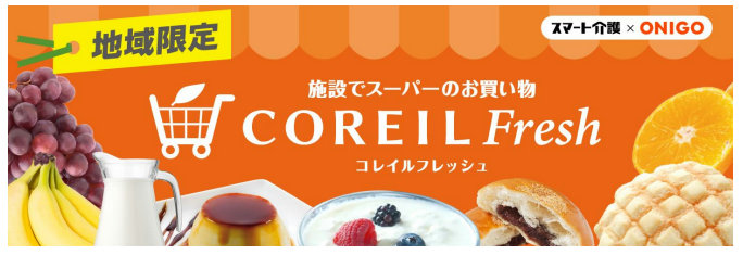 今回あらたにONIGOを通じて、介護・福祉施設が利用しているデリバリーサービス「スマート介護」(プラス(株)運営)が提供する施設利用者向けの当日配送サービス「COREIL Fresh(コレイルフレッシュ)」からの注文受付を開始する。