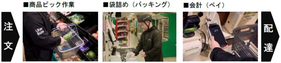 PPPはUber Eatsの配達パートナーが、注文商品のピッキング作業・袋詰めから会計・配達までを一貫して手掛ける機能。したがって店舗では人時を増やすことなく、オンラインデリバリーのサービス拡充で商圏の拡大および、新たな消費者へのリーチが可能になる。