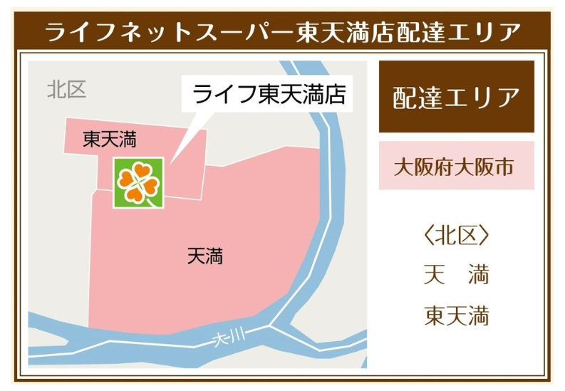 「ライフ東天満店」の配送エリアは大阪府大阪市北区の天満および東天満。