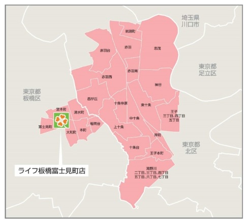 「ライフ板橋富士見町店」の配送エリアは東京都板橋区・北区の一部。