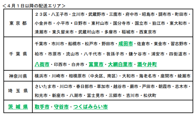 イオンネクスト(株)(千葉市美浜区、バラット・ルパーニ社長)が運営するネット専用スーパー「Green Beans(グリーンビーンズ)」は、新たに千葉県5市町、茨城県3市において、3月27日(金)から、4月1日(水)以降配送分の注文受付を開始する。
