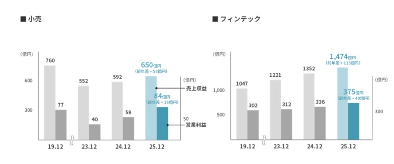丸井グループは大きく分けて小売事業とフィンテック事業がある。