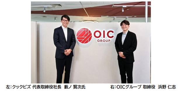 (株)OICグループ(神奈川県川崎市、高木勇輔社長)は12月10日(水)、飲食・フード産業に特化した人材サービスの「クックビズ(株)」(大阪市北区、藪ノ賢次社長)と資本業務提携を締結した。