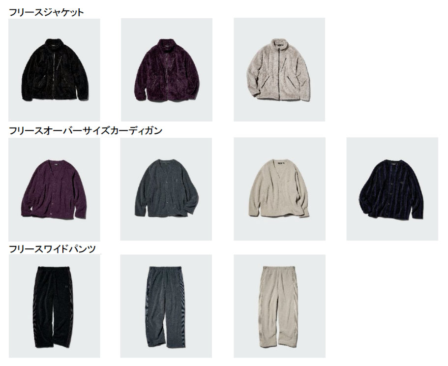 フリースジャケットは4990円(税込価格、以下同)、フリースオーバーサイズカーディガンとフリースワイドパンツは3990円。サイズ展開は、MEN: XS-4XL(XS, XXL-4XLはオンラインのみで展開)。