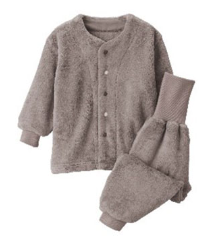 冷気が入りにくいよう袖口と裾にはリブを採用し、2025年発売商品はお腹を冷やさないよう腹巻きもプラスしているので、布団を蹴ってしまっても冷える心配がない。前はスナップボタンで、着替えやすく世話もしやすい仕様になっている。サイズは80~90・100~110、カラーはピンク・スモーキーブルー・スモーキーブラウン、価格は3990円。