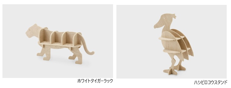 「ホワイトタイガーラック」4980円。「ハシビロコウスタンド」4980円。