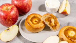 今回、第3弾として、安食シェフの監修商品としては初となるホットスイーツを発売する。中具は、食感を残したりんごのコンポートに、北海道産のクリームチーズをあわせることで、甘みの中にもコクと酸味がアクセントとなる味わいになっている。