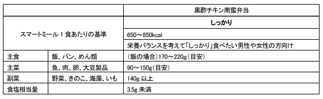 「黒酢チキン南蛮弁当」は、甘酢っぱい黒酢タレとマヨネーズが絡んだチキンに大葉をトッピングしてさっぱり感を加えた。ご飯にはこだわりの雑穀ご飯を使用。ボリュームのある揚げ鶏を使用しながらも、主食・主菜・副菜が揃い、野菜がたっぷりで食塩のとり過ぎにも配慮した「スマートミール」の認証基準もクリアし、健康にも配慮した弁当となる。