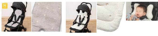 「ベビーカーシート(Nウォーム ST01 c-g)」は、サイズは幅25cm×奥行70cm×高さ1cm。カラーはグレー、価格は899円。「ベビーカークッション(NウォームWSP)」は、中綿が入っているので頭を優しく包み込み支える仕様。チャイルドシートや自転車の座席などにも使用が可能だ。サイズは幅37cm×奥行80cm×高さ6cm、カラーはグレー・アイボリー、価格は3490円。