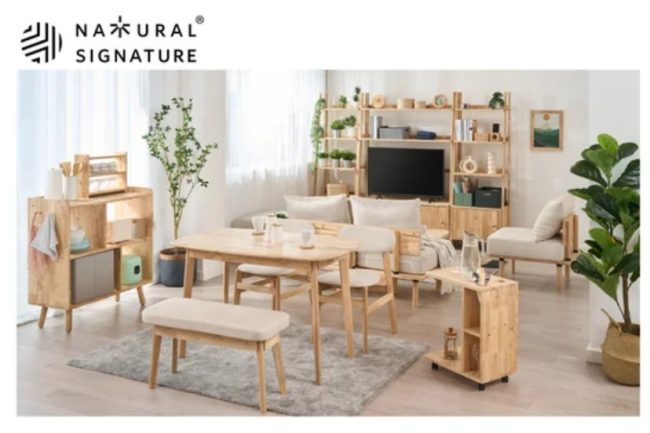 「NATURAL SIGNATUREⓇ」は、環境への影響が少ない天然木・ラバーウッドを使用しており、自然な美しさと優しい温もりを活かした家具シリーズ。ひとつひとつ異なる節や木目、時間とともに変化する天然木の美しい色合いなどが好評だった。今回新作アイテムとしてソファやテーブルチェアセットなどを追加する。