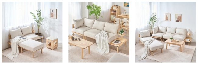 リビングの主役となるソファは、2人掛け・1人掛け・コーナー・オットマンを組み合わせることで、部屋のスペースや家族の人数に合わせてアレンジも可能だ。