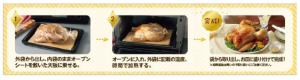 今回発売するクリスマスの定番メニュー “味付ローストチキン” は、耐熱性の内袋のままオーブンに入れて予熱なしで焼くだけで出来上がる。