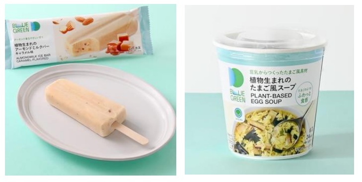 第7弾となる今回は、シリーズ初のアイスからアーモンドミルクを使用したやさしい甘さの「植物生まれのアーモンドミルクバー」171円(本体価格、以下同)や、カップ入りスープから豆乳由来のかきたま風具材の「植物生まれのたまご風スープ」158円を発売する。