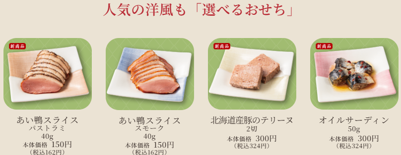 また洋風おせちも、あい鴨スライスやテリーヌなど4商品を販売する。