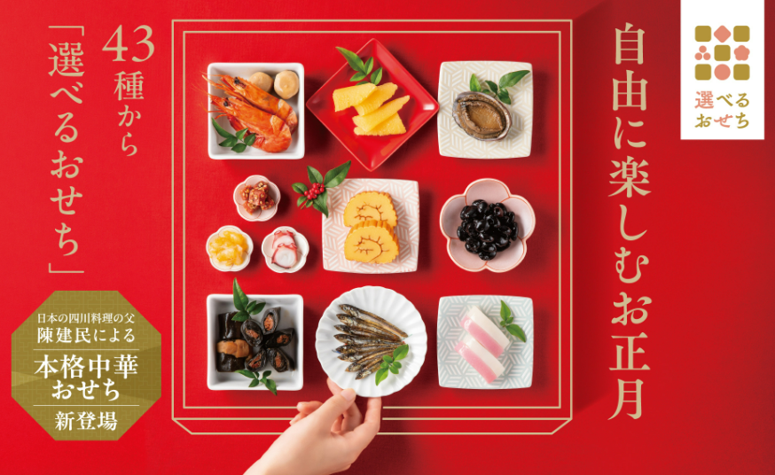 (株)ローソンストア100(神奈川県川崎市、小栗知義社長)は12月25日(木)から、全43種類の「選べるおせち」を発売する。「自由に楽しむお正月」をコンセプトに、好きなものを好きなだけ選んで”マイおせち”をつくることができる。