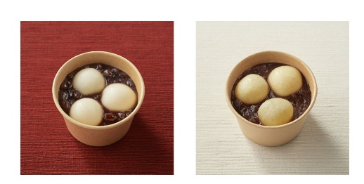 「ぜんざい(つぶあん)」と「もちきびぜんざい(こしあん)」は、あんこは北海道十勝産の小豆を使用し、もち米は、北海道産の「きたふくもち」という品種を使用。素材のおいしさを生かした、温めるだけで手軽に楽しめるカップ入りのぜんざい。それぞれ390円。