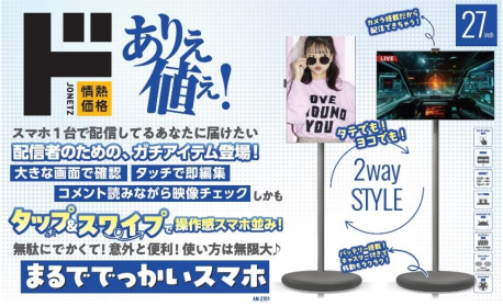 (株)ドン・キホーテ(東京都目黒区、鈴木康介社長)は11月28日(金)から、オリジナル商品ブランド「情熱価格」から移動型スマートモニター「まるででっかいスマホ」を、全国のドン・キホーテ系列店舗で順次販売する。