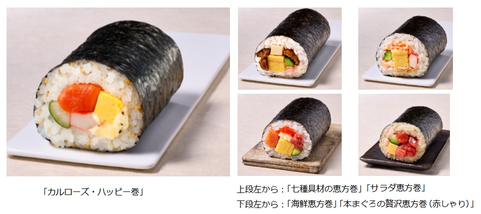 2026年の恵方巻では、国産米よりも比較的安価なアメリカ合衆国産のカルローズ米を使用し、米に合う具材に見直すことなどで価格を約1割抑えた「カルローズ・ハッピー巻」430円(税込価格、以下同)を発売する。ローソンで外国産米を使用した寿司を発売するのは初となる。