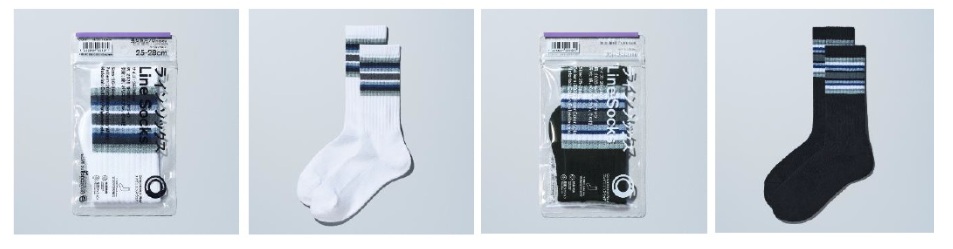 ラインソックスの足底はパイル編みの肉厚仕様で、抗菌防臭加工でニオイにくい仕様。カラーは25年秋冬のシーズンカラーを配色。サイズは22-25cm、25-28cm。本体価格は390円(以下同)。