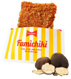 イタリア産黒トリュフパウダーを使用したファミチキ。黒トリュフの豊かな香りとチキンの旨みが絶妙にマッチした、ワンランク上の味わい。258円(税込み、以下同じ)。