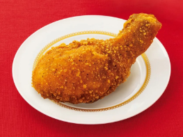 パリッとした衣と、プリっとしたジューシーな肉感のバランスが絶妙な骨付きチキン。18種類のスパイス&ハーブを使用した芳醇な香りが特徴。360円。